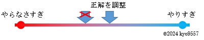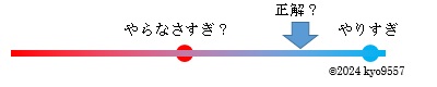 真ん中を知るためには、右端(やりすぎ)と左端(やらなさすぎ)を知っていることが必要です。