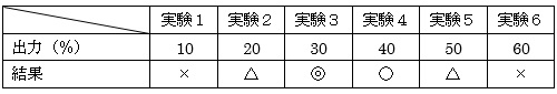 上のようなテーブルが作れれば「最適条件は出力30%である」といえます。