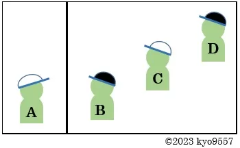 - AとCは白の、BとDは黒の帽子をかぶっている。