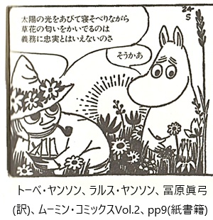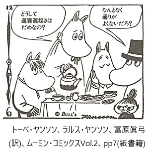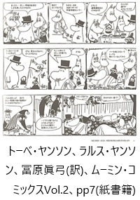 ムーミン・コミックスは、トーベ・ヤンソン、ラルス・ヤンソン、冨原眞弓(訳)による複数話完結型(14巻+シリーズ展開)の漫画作品です。